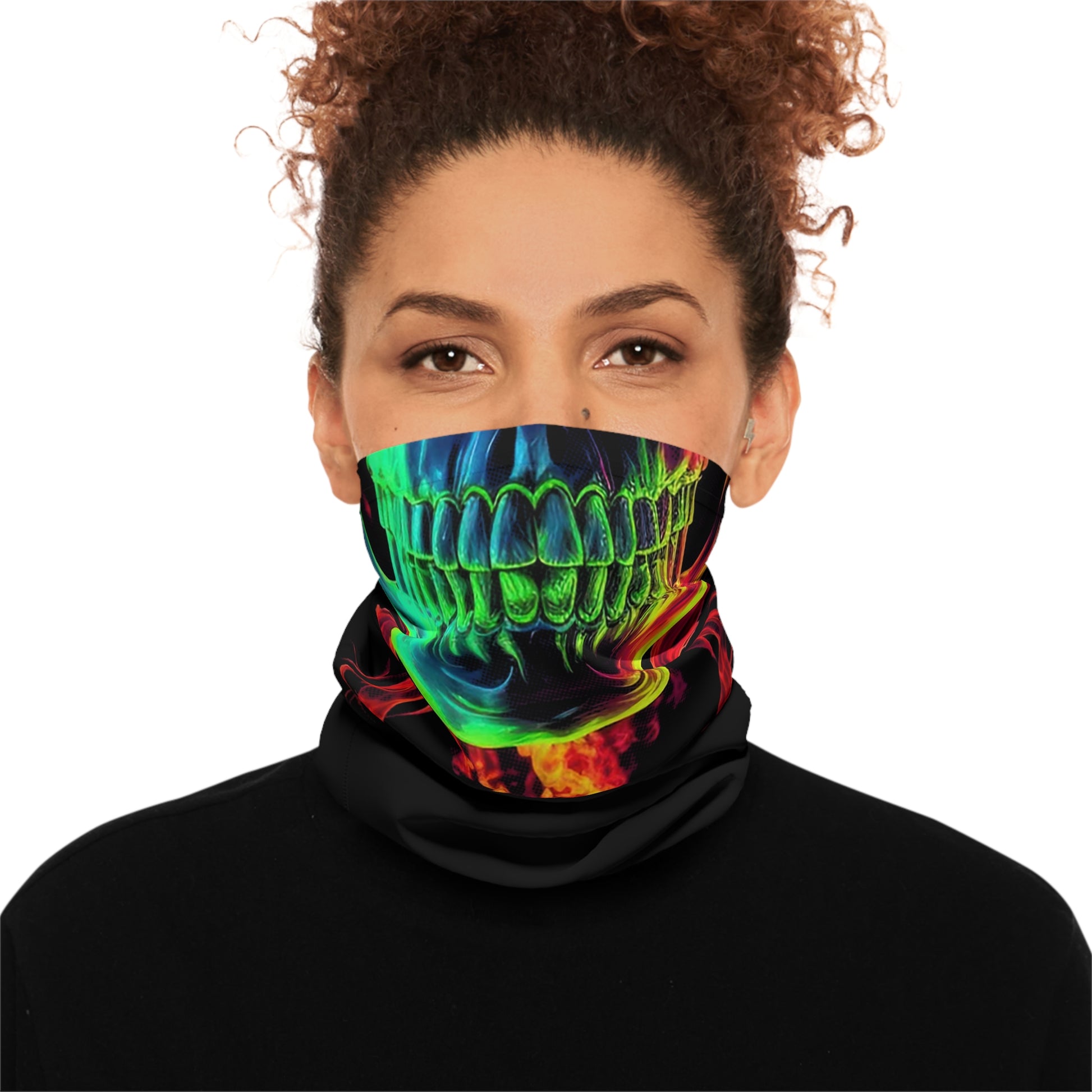 Skull Flame Neck Gaiter — Neon Rainbow Skull Lightweight Face Covering